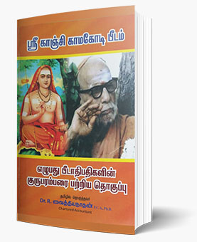 At the outset, I offer my humble Namaskarams to Maha periyava who is very much with us, all the time, like a Mother with tender care to her affectionate children. Auditor CA., Dr R Vaithyanathan has already brought out a monumental work of our most revered Kanchi Kamakoti Peetam in Tamil. The book has received overwhelming response and gone ahead with several reprints. Dr Vaithyanathan Ji has taken a vow that as per the instructions of Bala Periyava, the sale proceeds of the book are being donated to Veda Patasala. He is sure to continue this throughout.